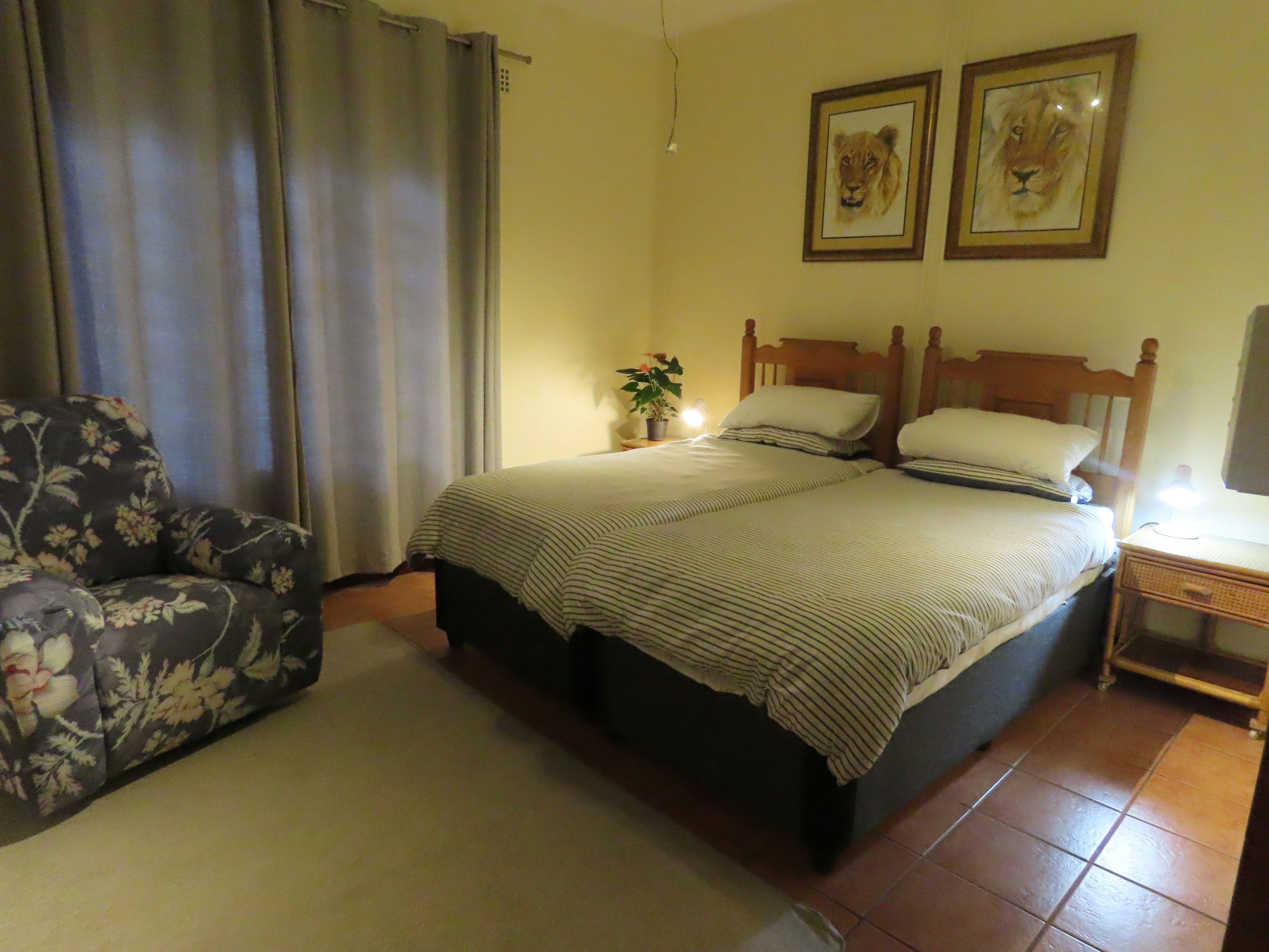 Restful. Nicely located, fenced porch for the brakkie, correct address is Cicad 40, nice and clean, everything works, friendly hostess, beautiful forest garden, lots of shade.
