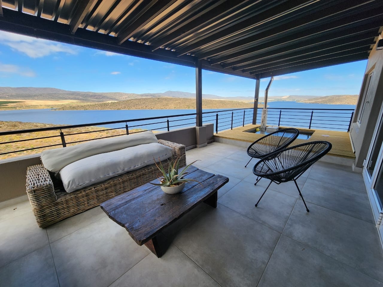 Not great value for money. This might look like a great option but actually isn't. The price charged is not justified for what you get. We paid more than R7000 for two nights and were not even provided with firewood. Shocking! The small swimming pool on the top balcony should be a Jacuzzi instead. There are several broken/loose tiles all over the place and quite a few in the kitchen that are about to break if you step on them. There is a very dangerous sliding window on one side of the top level that should have a railing to prevent a child or even an adult from falling through that window if it is open. How this house was approved for occupation by the municipality and how it can be advertised here with a window like that is mind-boggling as someone can get seriously injured or killed if he/she falls out that window next to the TV. The garage is full of the owner's goods and a boat so you cannot park your vehicle inside the garage. How can this be if it is advertised as paying for the entire house? No firewood and/or charcoal were made available so if you did not bring your own then it is a long drive back to town to get some. No electric blankets, heaters or aircon to warm up/cool rooms except in the one room. There are no TVs in any of the rooms so everyone ends up watching the same channel on the one TV. No soap bowls or stands in the showers so you have to put things on the floor. No towel rails or hooks. Really? For the price you pay, one would not expect to experience these issues and shortcomings. We travel a lot and I am not one to complain but this was not great value for money.